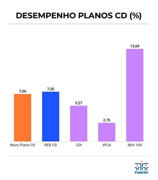 A gestão ativa de investimentos permitiu que a carteira de renda variável dos planos CD, equivalente a 20% do total de recursos, capturasse o movimento de alta na Bolsa de Valores e superasse o índice de referência (IBrX 100), que avançou 13,69% até maio, depois de um 2024 com forte variação negativa.